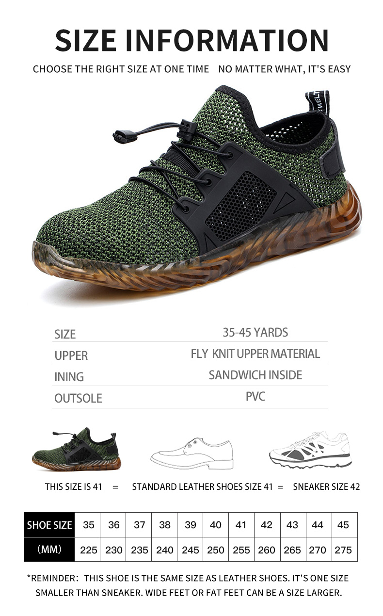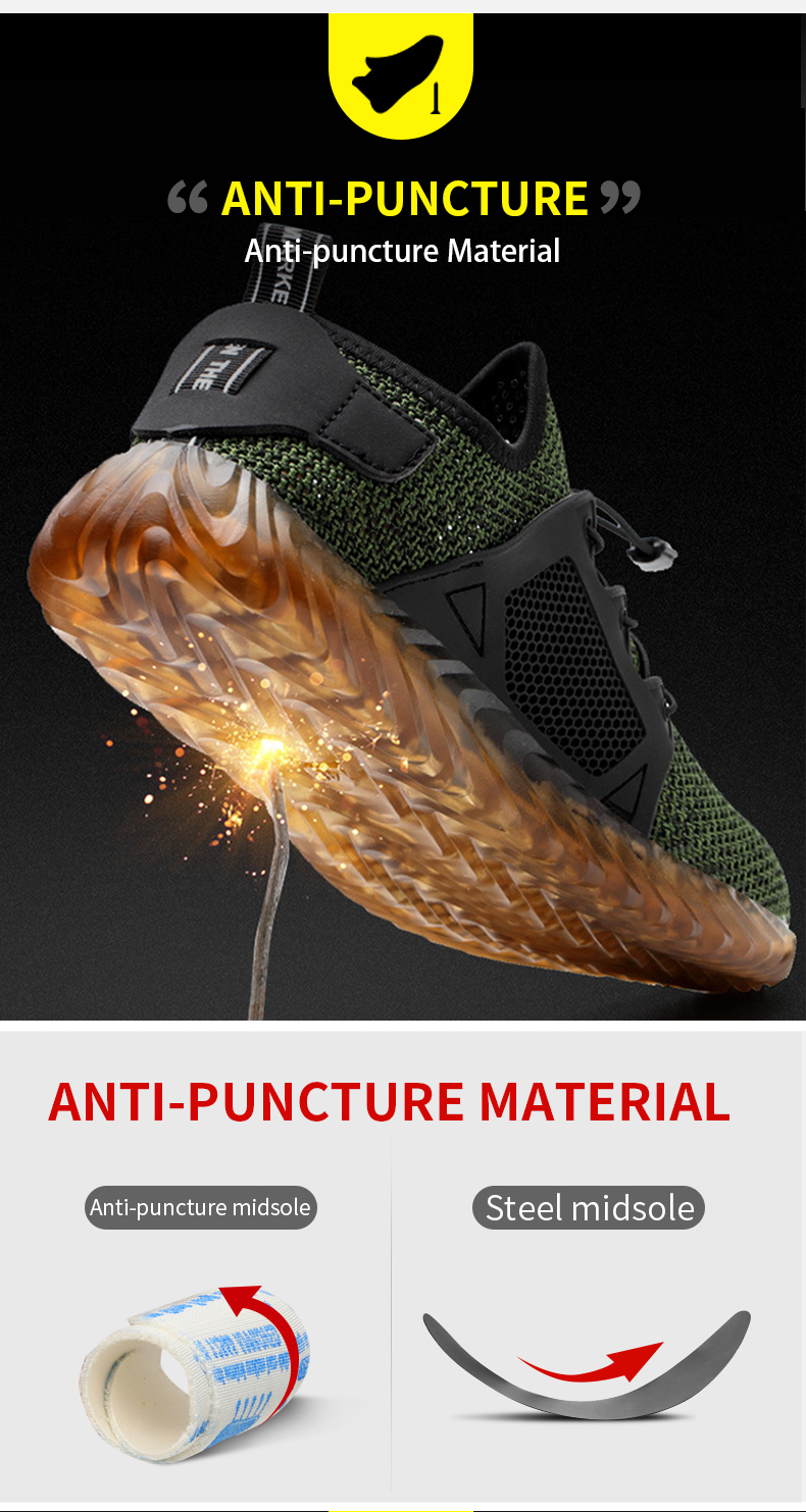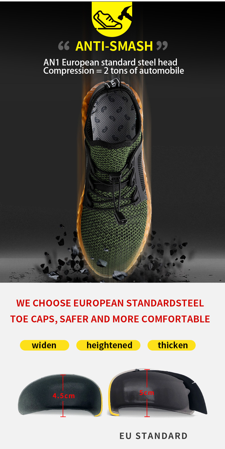 The main functions of shoes are anti smashing, anti piercing and anti-skid.The interior of the shoes contains the European standard steel toe, which can withstand a resistance of 15000N.