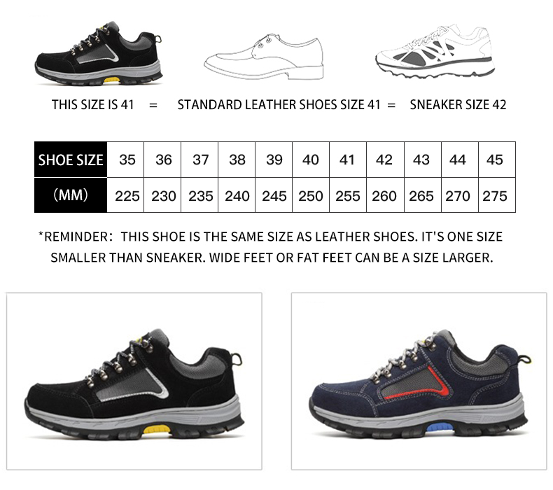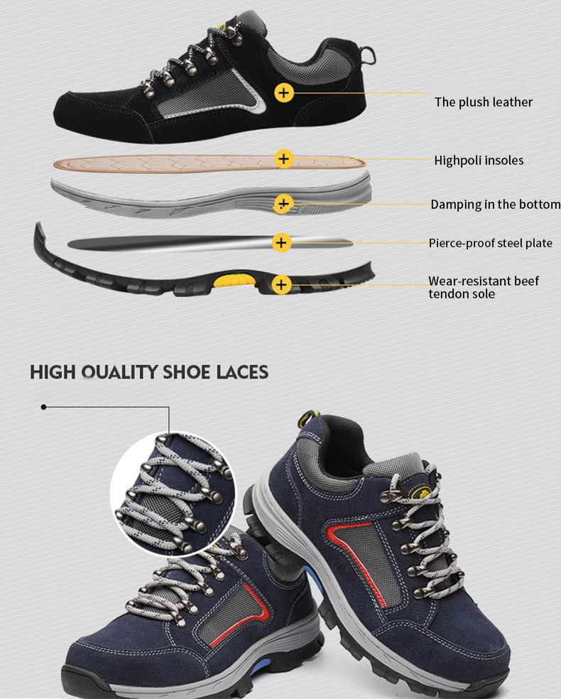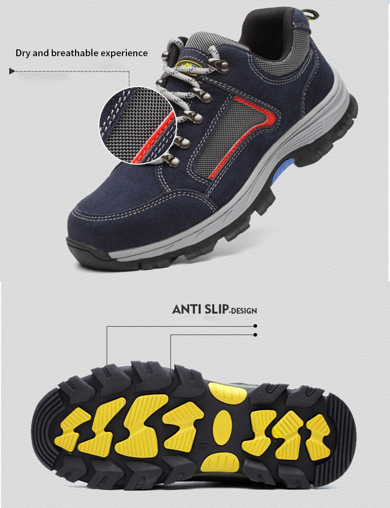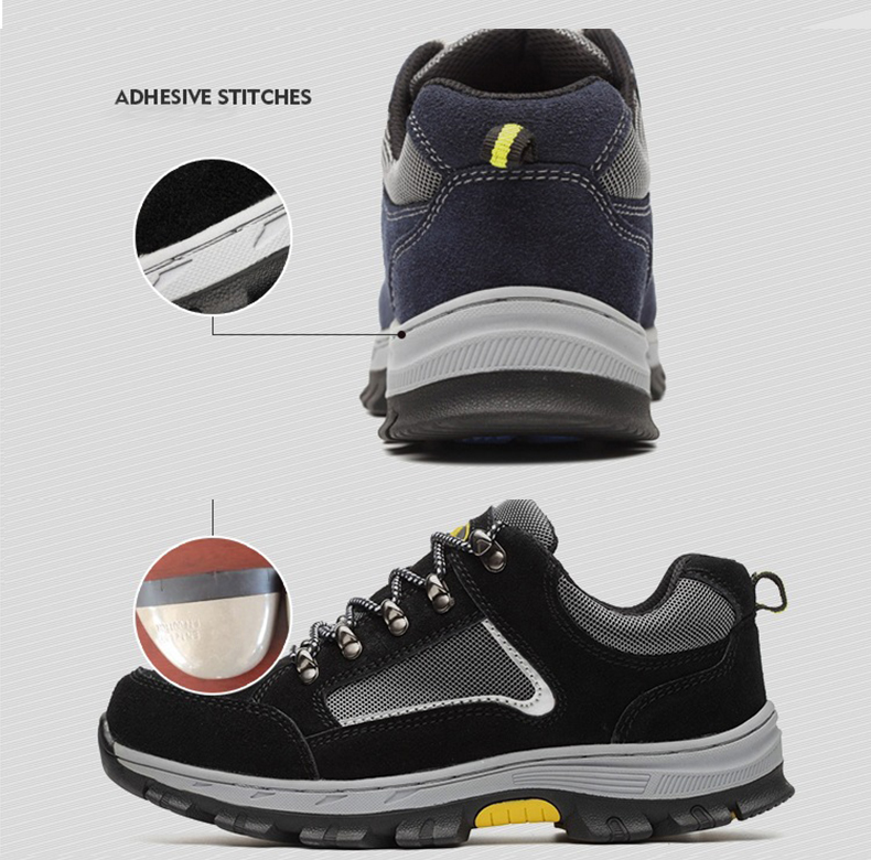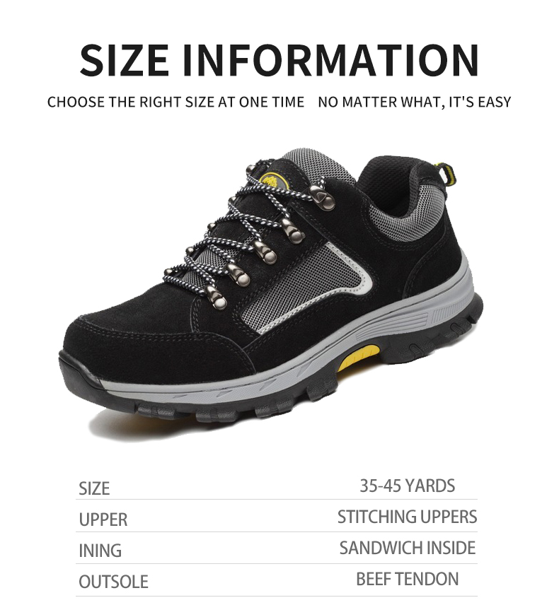 The main functions of shoes are anti smashing, anti piercing and anti-skid.The interior of the shoes contains the European standard steel toe, which can withstand a resistance of 15000N.