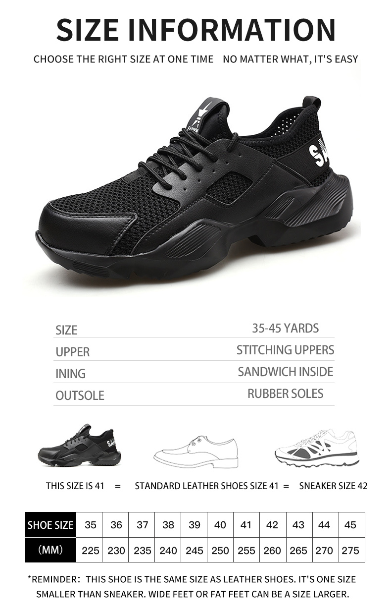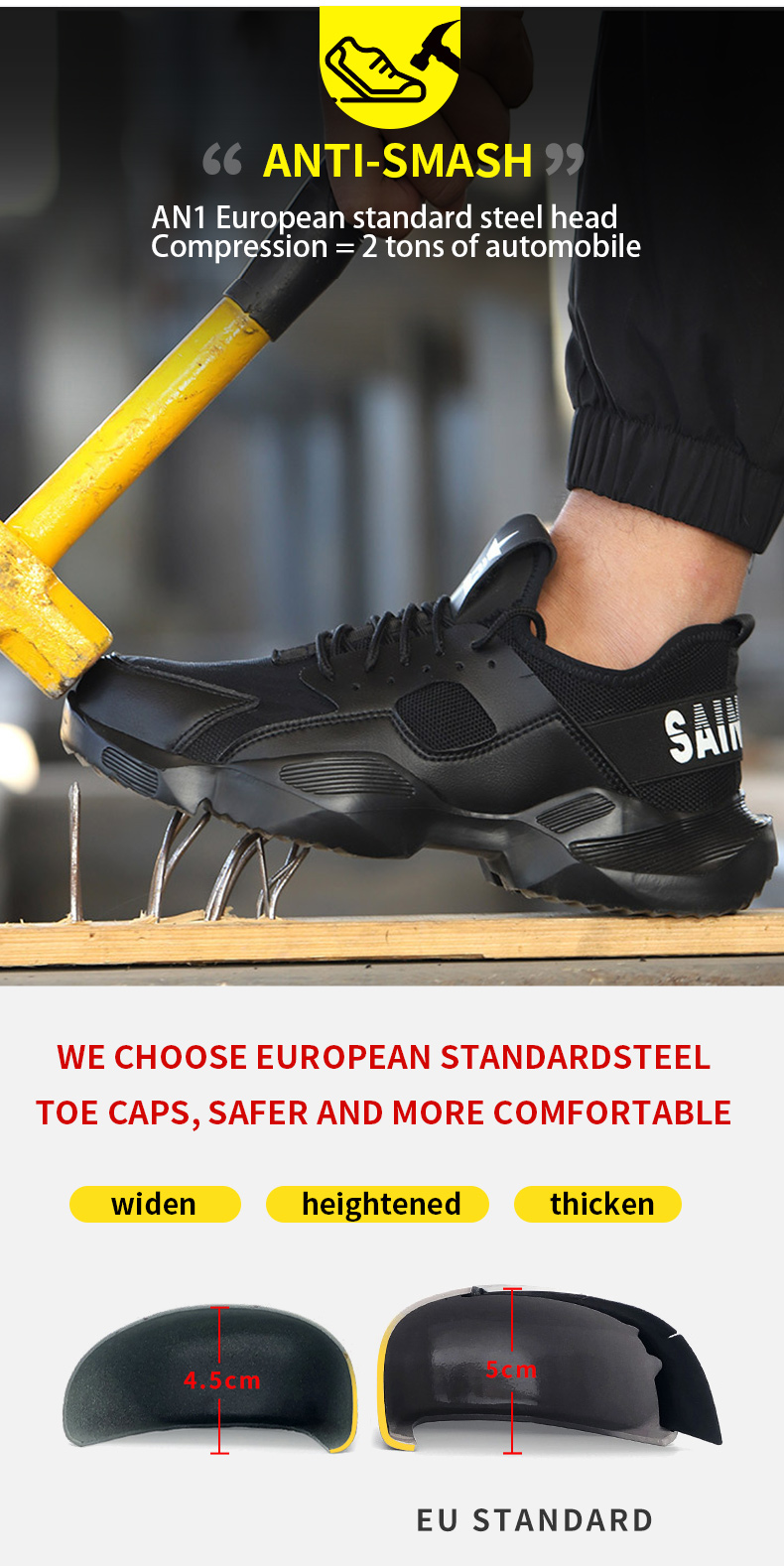 The main functions of shoes are anti smashing, anti piercing and anti-skid.The interior of the shoes contains the European standard steel toe, which can withstand a resistance of 15000N.