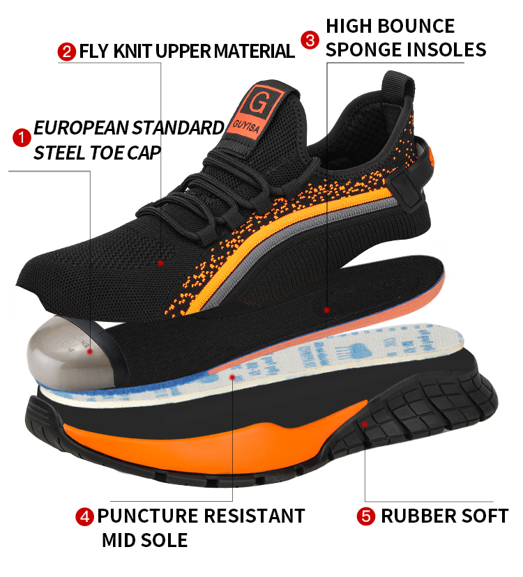 Guyisa top selling Chinese high quality steel toe safety shoes wear resistant and elastic working shoes