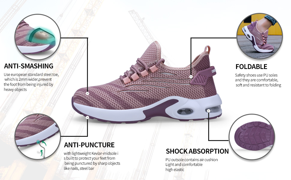 The toe contains an European standard steel toe.It has passed CE and ASTM certification.The steel toe can withstand a resistance of 15 thousand Newtons.The European steel toe is a protective steel toe that meets the anatomical requirements.It is suitable for a spacious toe box and excellent arch support,Wich can support the natural contour of the foot.