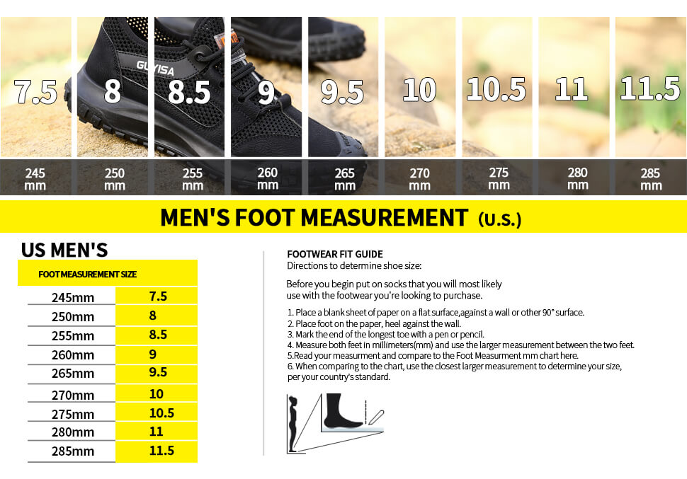 The toe contains an European standard steel toe.It has passed CE and ASTM certification.The steel toe can withstand a resistance of 15 thousand Newtons.The European steel toe is a protective steel toe that meets the anatomical requirements.It is suitable for a spacious toe box and excellent arch support,Wich can support the natural contour of the foot.