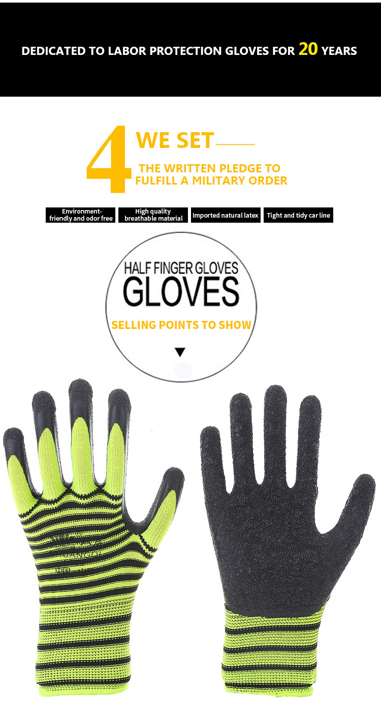 Coating Crinkle Rubber Anti Slip Safety Thermal Terry Work Latex Gloves For Construction Gardening