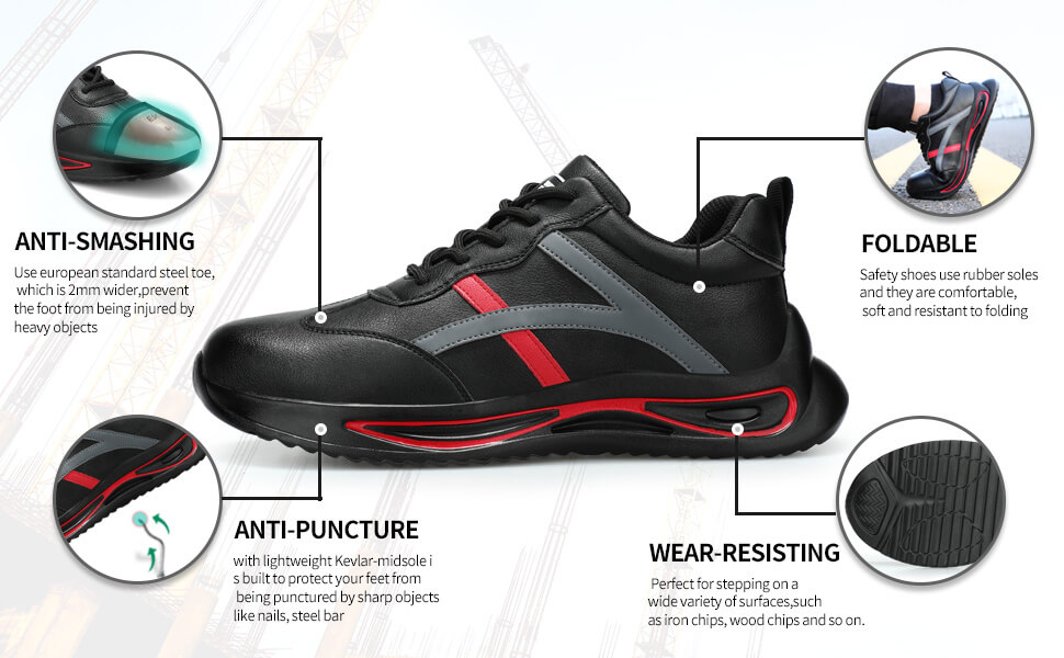 These shoes are stylish. With a steel toe cap and puncture-resistant midsole, you don't have to worry about stressing your feet while you work. Made of microfiber leather fabric, easy to clean, you can keep your shoes clean and tidy at all times, and the lightweight PU outsole allows you to work easily.