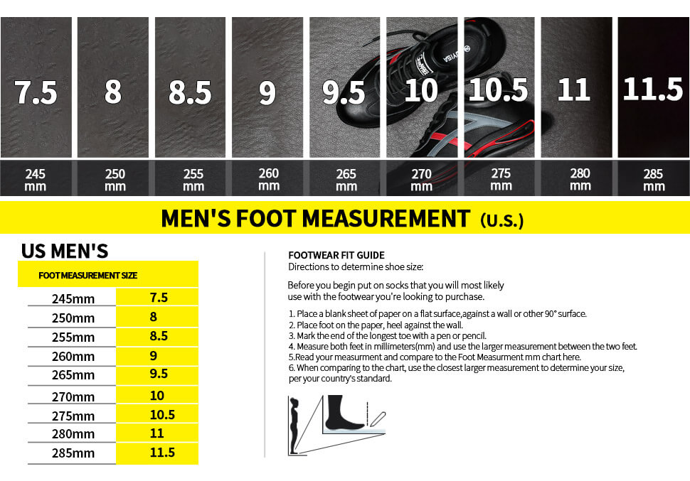 Please choose the right size safety shoes according to the following size chart:
