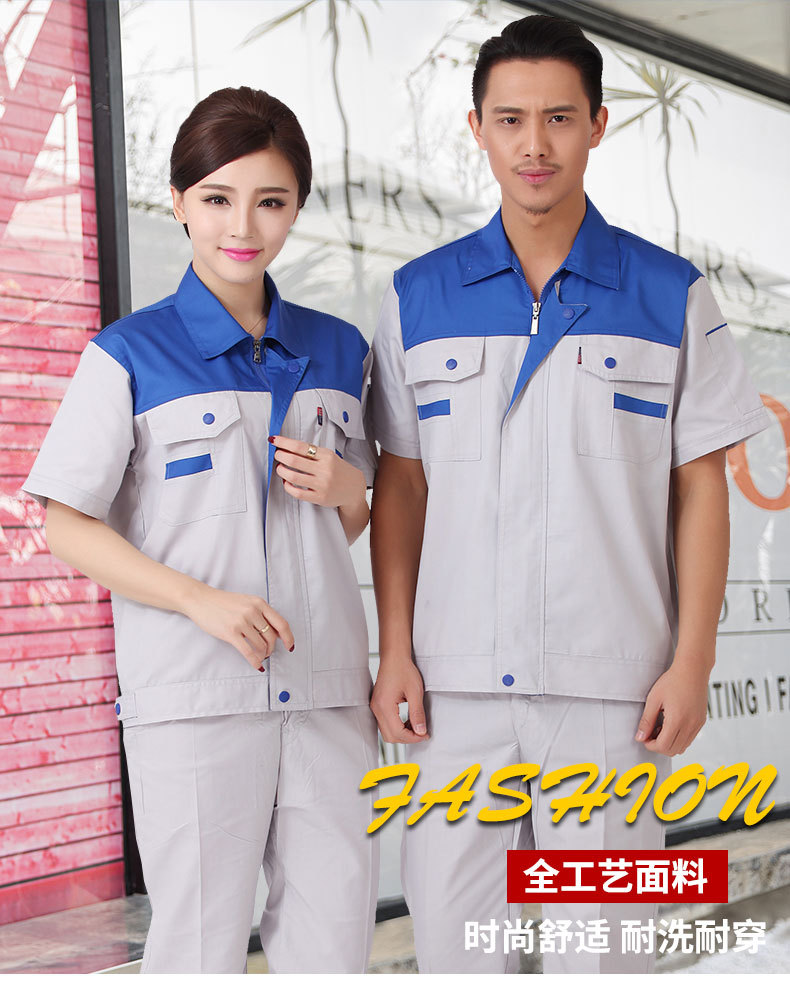Summer men's and women's casual workwear mechanical short sleeve shirt durable sales workwear